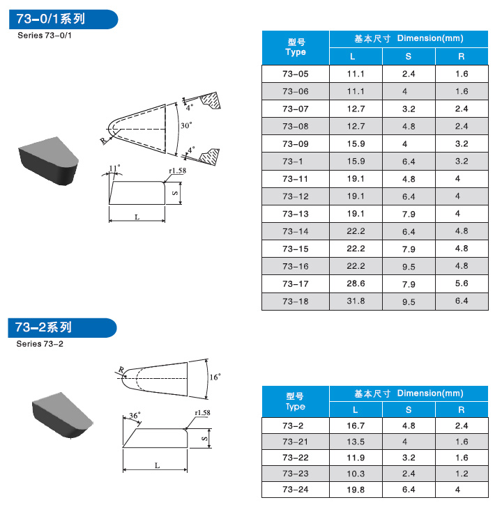 73系列硬質(zhì)合金焊接刀片